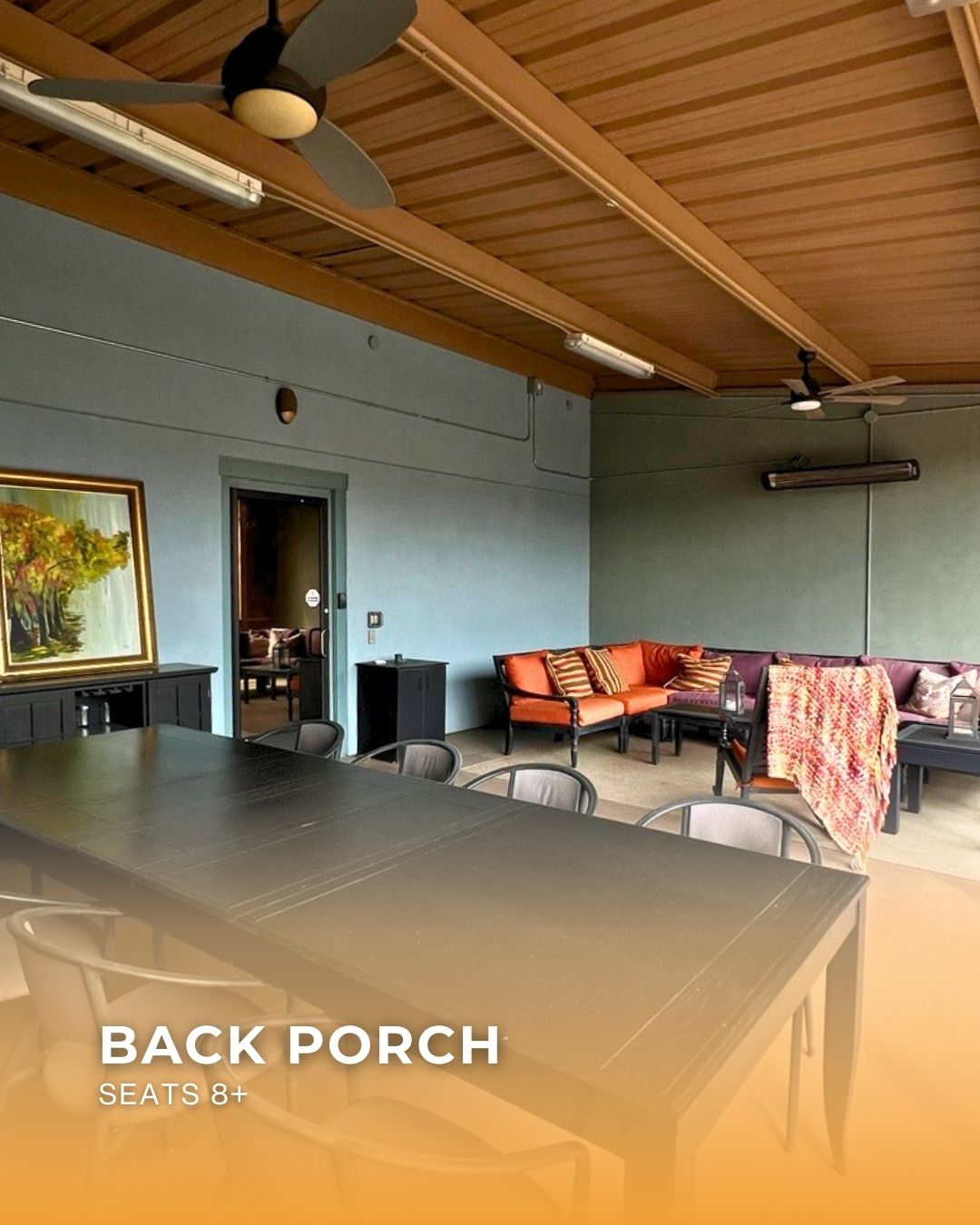 Relaxing, screened in porch with large dining table and couches. Fans and heaters.